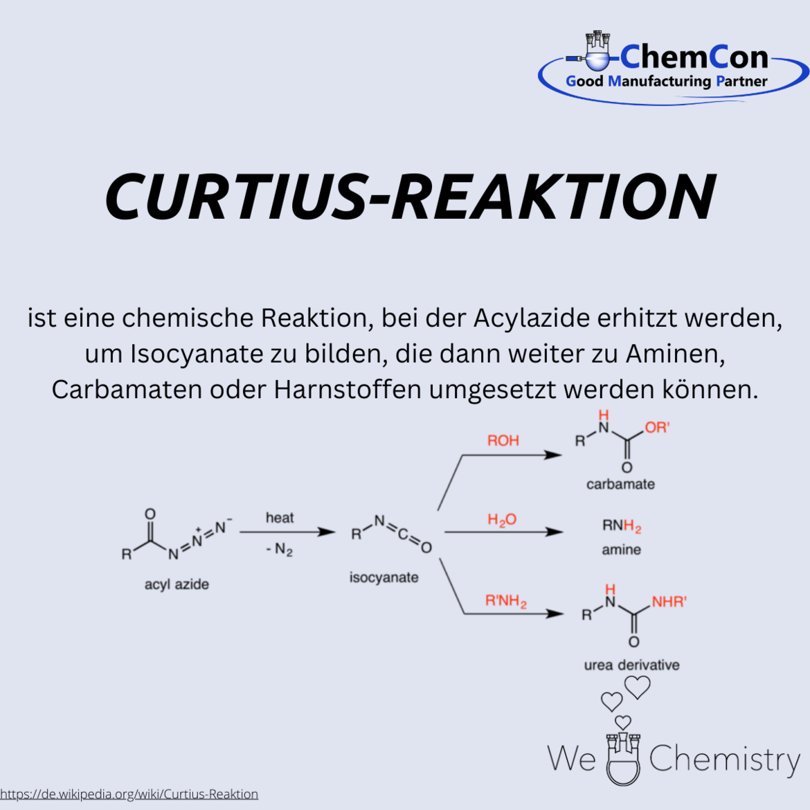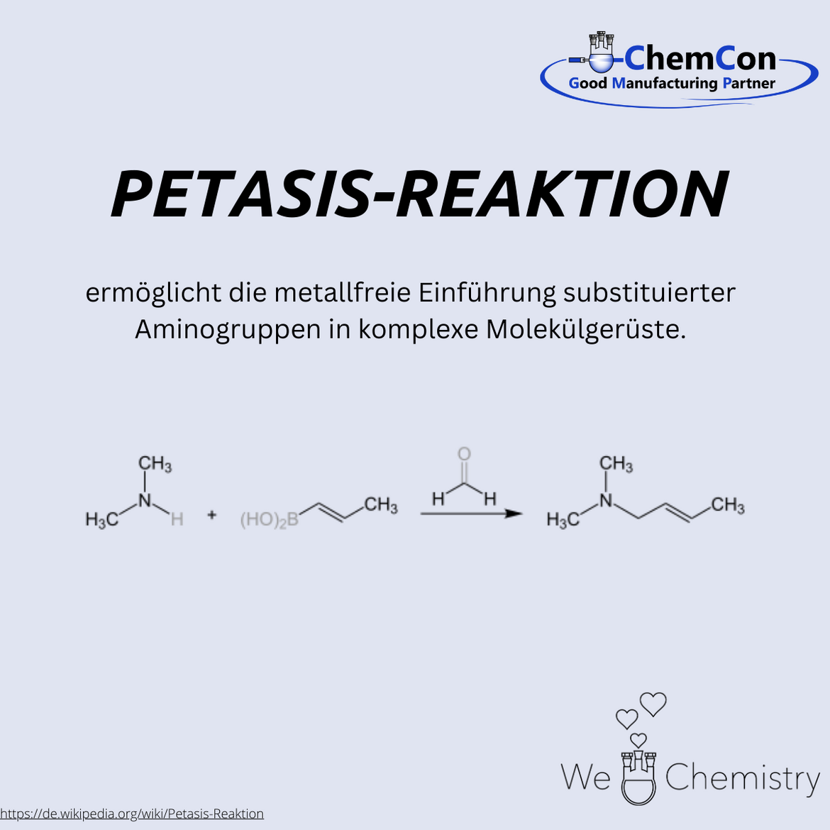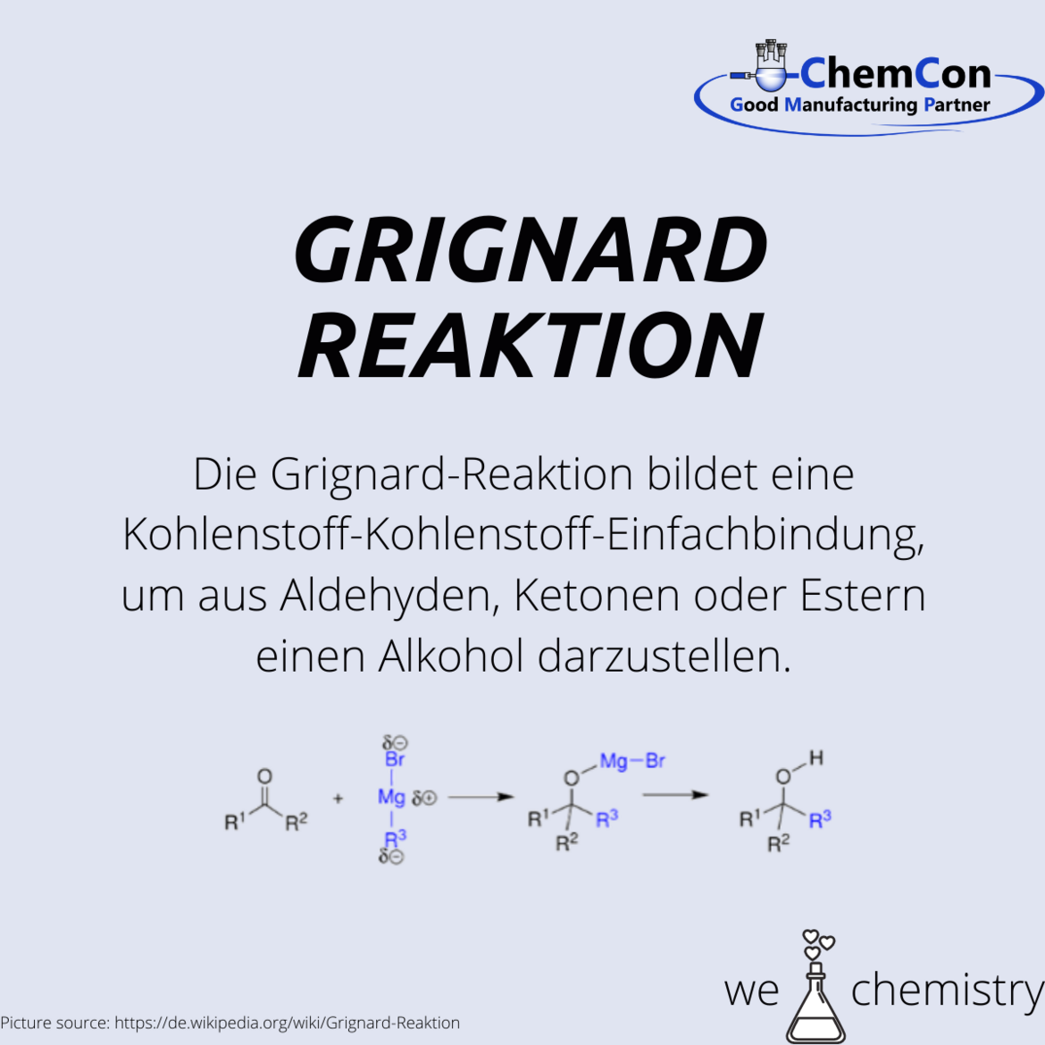 Grundlegende chemische Reaktionen wurden oft nach ihren Entdeckern/Entwicklern benannt. Sie stellen ein Fundament in der Organischen Chemie dar und helfen bei der Aufstellung von komplizierten Synthesen. Als Auftragshersteller von "small organic molecules" und Polymeren beschäftigt sich ChemCon natürlich mit der Entwicklung von Synthesen und dem Überführen von Synthesen aus dem Labor in einen größeren Maßstab (Upscaling). Somit sind diese Namensreaktionen, die alle bereits in ChemCon Laboren angewendet wurden, eine der chemischen Grundlagen für unsere synthetische Arbeit.