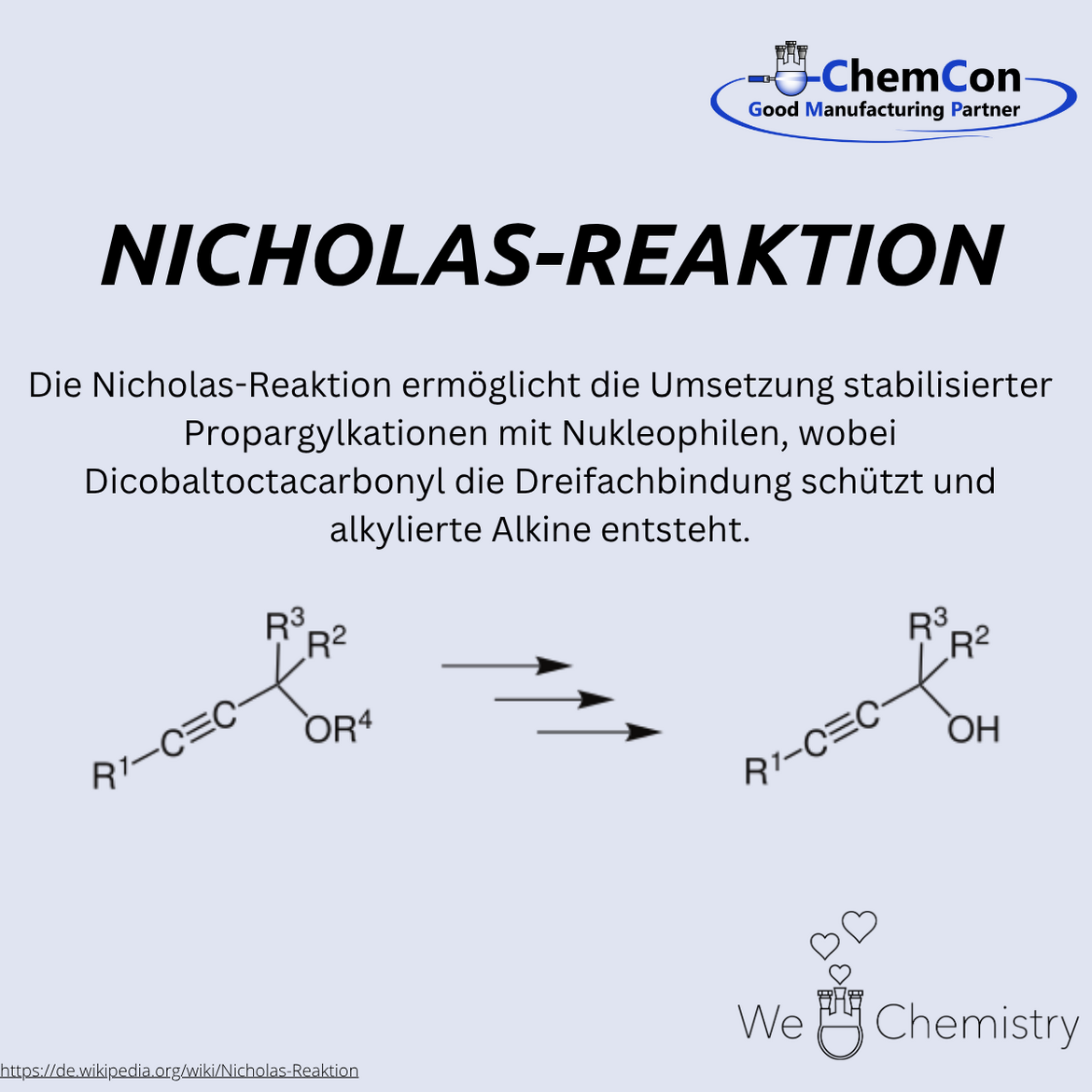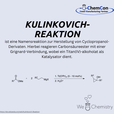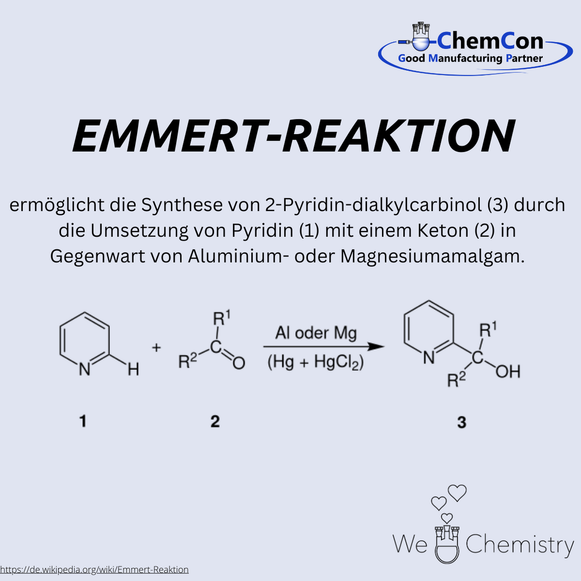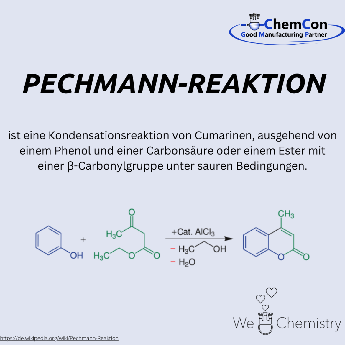 Grundlegende chemische Reaktionen wurden oft nach ihren Entdeckern/Entwicklern benannt. Sie stellen ein Fundament in der Organischen Chemie dar und helfen bei der Aufstellung von komplizierten Synthesen. Als Auftragshersteller von "small organic molecules" und Polymeren beschäftigt sich ChemCon natürlich mit der Entwicklung von Synthesen und dem Überführen von Synthesen aus dem Labor in einen größeren Maßstab (Upscaling). Somit sind diese Namensreaktionen, die alle bereits in ChemCon Laboren angewendet wurden, eine der chemischen Grundlagen für unsere synthetische Arbeit.