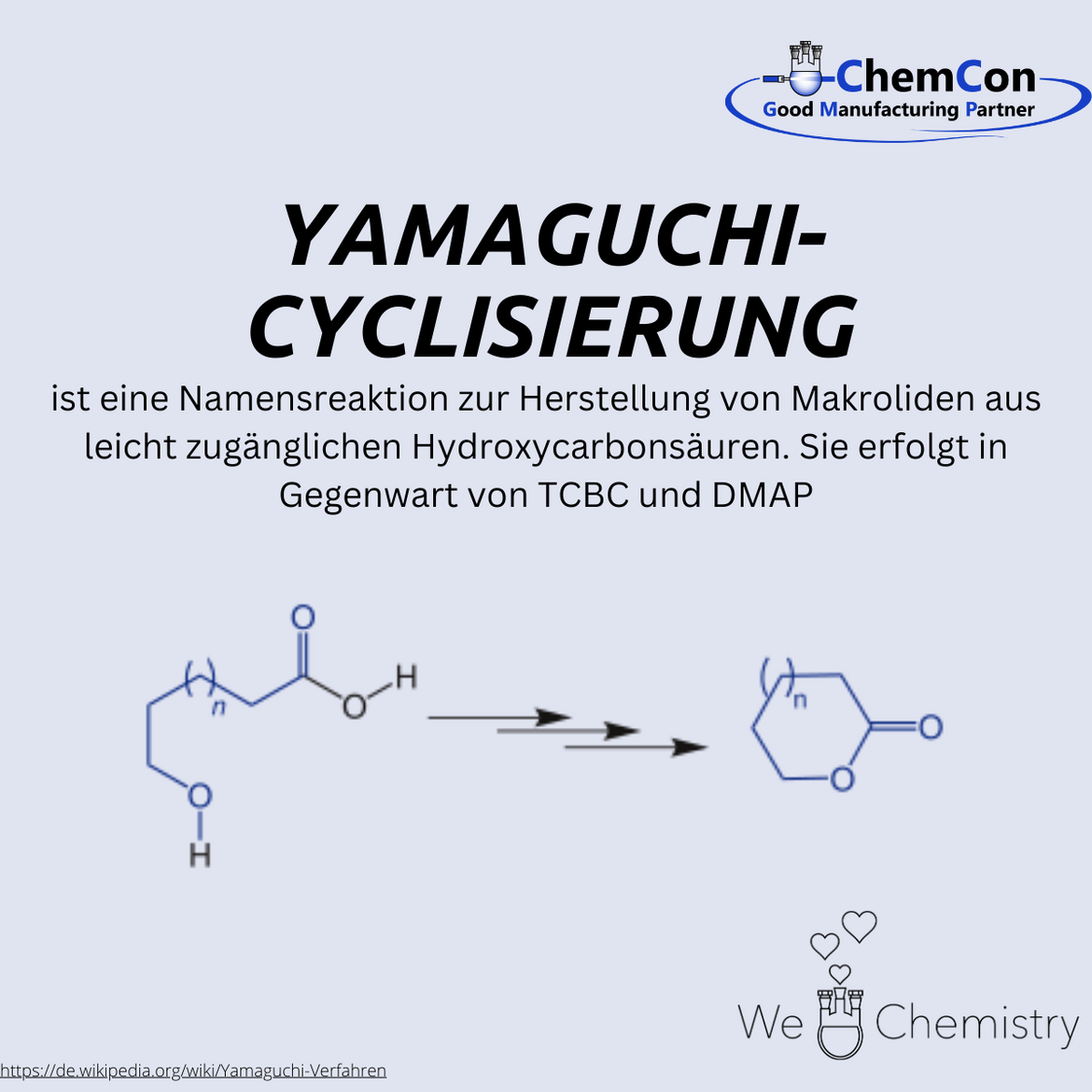 Eine der bekanntesten Beiträge von Yamaguchi ist die Entwicklung der Yamaguchi-Cyclisierung, eine Methode, die die Synthese von makrozyklischen Laktone revolutioniert hat. Diese Reaktion umfasst die Bildung von makrozyklischen Ringen aus Hydroxycarbonsäuren unter Verwendung von Yamaguchis einzigartigen Reagenzien, wie 2,4,6-Trichlorbenzoylchlorid (TCBC) und 4-Dimethylaminopyridin (DMAP). Das Verfahren zeichnet sich durch seine Effizienz und hohe Ausbeute aus und ermöglicht die Herstellung großer, komplexer Ringstrukturen, die für verschiedene Naturstoffe und pharmazeutische Produkte von entscheidender Bedeutung sind.