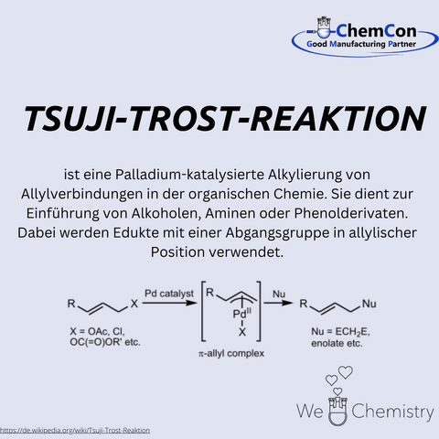ChemCon setzt die Tsuji-Trost-Reaktion in der kundenspezifischen Synthese ein, um maßgeschneiderte organische Verbindungen für pharmazeutische und biotechnologische Anwendungen herzustellen. Durch diese effiziente Methode können hochreine Zwischenprodukte mit hoher Selektivität und atomökonomischem Ansatz synthetisiert werden, was zur Nachhaltigkeit und Qualitätssicherung beiträgt.