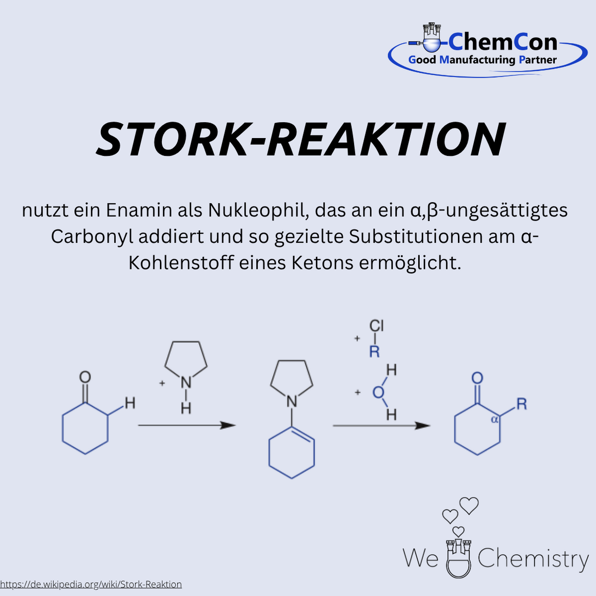 Bei ChemCon wären wir in der Lage, die Stork-Reaktion zielgerichtet einzusetzen, um selektiv modifizierte Carbonylbausteine für pharmazeutische Zwischenprodukte unter GMP-Bedingungen bereitzustellen.